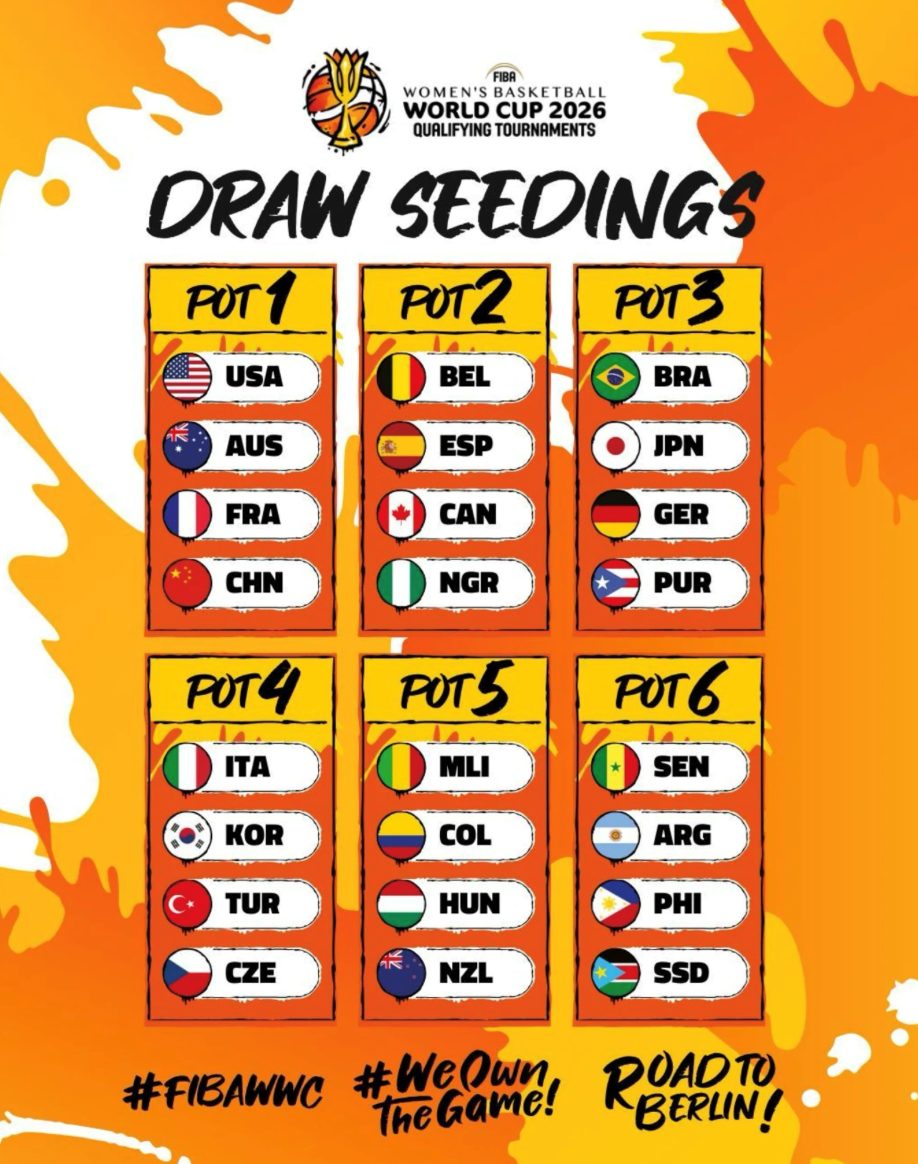 Uno dei quattro gironi di qualificazione sarà sorteggiato con due squadre africane (esclusa la Nigeria, campionessa dell’AfroBasket femminile ), mentre gli altri due gironi includeranno una squadra africana ciascuno.