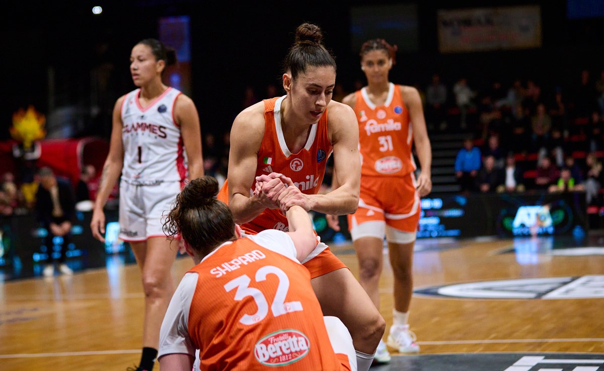 Si sapeva che sarebbe stata una gara punto a punto contro una squadra che letteralmente non molla mai. Il Beretta Famila torna da Charleville con la vittoria per 79-81 al termine di una partita estremamente combattuta, dall'alto punteggio e con continui cambi di padrone. Schio ha faticato tanto in difesa questa sera mentre in attacco ha mostrato grande fluidità con Zandalasini, Shepard e Verona in doppia cifra. Certo, non semplice contenere una squadra che ha tirato con il 50% da due e da tre punti ma nel finale, il Beretta ha saputo compattarsi e portare a casa una vittoria importantissima che permette di superare in classifica proprio le transalpine. Ad assistere alla gara anche Kitija Laksa, appena arrivata dalla WNBA, e un gruppo di fedelissimi sostenitori orange a cui va il nostro ringraziamento.