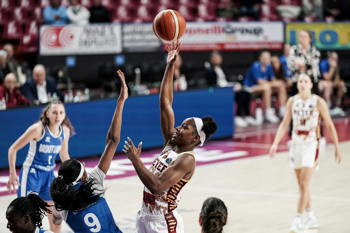 L'Umana Reyer Venezia batte 57-56 Basket Landes. Charles e Dojkic sono le protagoniste di un buon avvio delle orogranata, che a inizio secondo quarto arrivano a +7 con Pasa. Lacan e Wojta guidano la replica di Landes, che pareggia con una tripla di Musa. Il punteggio è in perfetto equilibrio all'intervallo, poi le francesi segnano solo due punti nella prima metà del terzo periodo e la Reyer arriva in doppia cifra di vantaggio con una tripla di Charles. Rispondono prima Bussiere e Macquet, poi Wojta trova la tripla del nuovo -1 all'inizio dell'ultimo quarto. Venezia esce da un momento di difficoltà con un 7-0 firmato Charles e Dojkic, ma poi resta cinque minuti senza segnare e subisce un parziale di 9-0. Pardon trova il sorpasso in campo aperto a 16" dal termine, poi Charles si guadagna due tiri liberi e fa di nuovo +1. Lacan non trova il canestro della vittoria, ma Landes riesce comunque a mantenere il primo posto per la differenza canestri. Venezia porta a casa una vittoria comunque preziosa grazie a 14 punti di Charles e 12 di Dojkic, dall'altra parte top scorer Wojta con 14 punti.