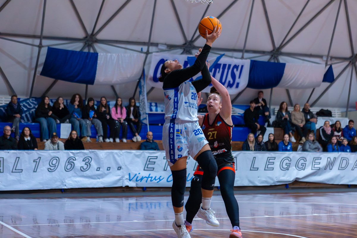 Il primo allungo delle padrone di casa arriva con un 9-0 di parziale in chiusura di primo quarto, poi San Giovanni Valdarno si riporta anche a -1 ma rimane dietro fino all'intervallo. Sette punti consecutivi di Naczk permettono a Cagliari di scappare nuovamente, mentre è Tykha a realizzare per il primo vantaggio in doppia cifra con un gioco da tre punti. Le ospiti tornano a contatto con un 8-0 di parziale per aprire il quarto periodo, poi Bernardi ristabilisce la parità a due minuti dalla fine. A decidere la partita nell'ultimo un canestro in taglio di Naczk (top scorer con 17 punti) e il successivo recupero di Zieniewska, poi Corda (12 punti, 8 rimbalzi) chiude i conti dalla lunetta.