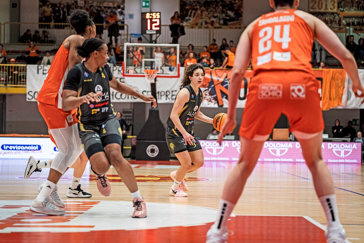 L'ultima uscita del 2025 rappresentava una vera "Mission: Impossible" per l'Alama San Martino di Lupari, costretta a cedere sul parquet della capolista. Nel posticipo del 13° turno di A1 femminile, il Famila Wuber Schio si prende la vittoria e chiude l'anno in vetta imbattuto, peraltro senza sconfitte casalinghe contro squadre italiane in tutto il 2025. Le Lupe ci hanno provato, riuscendo a restare in linea di galleggiamento per quasi tre frazioni, prima del parziale che ha spezzato la partita e permesso alle padrone di casa di scappare via.