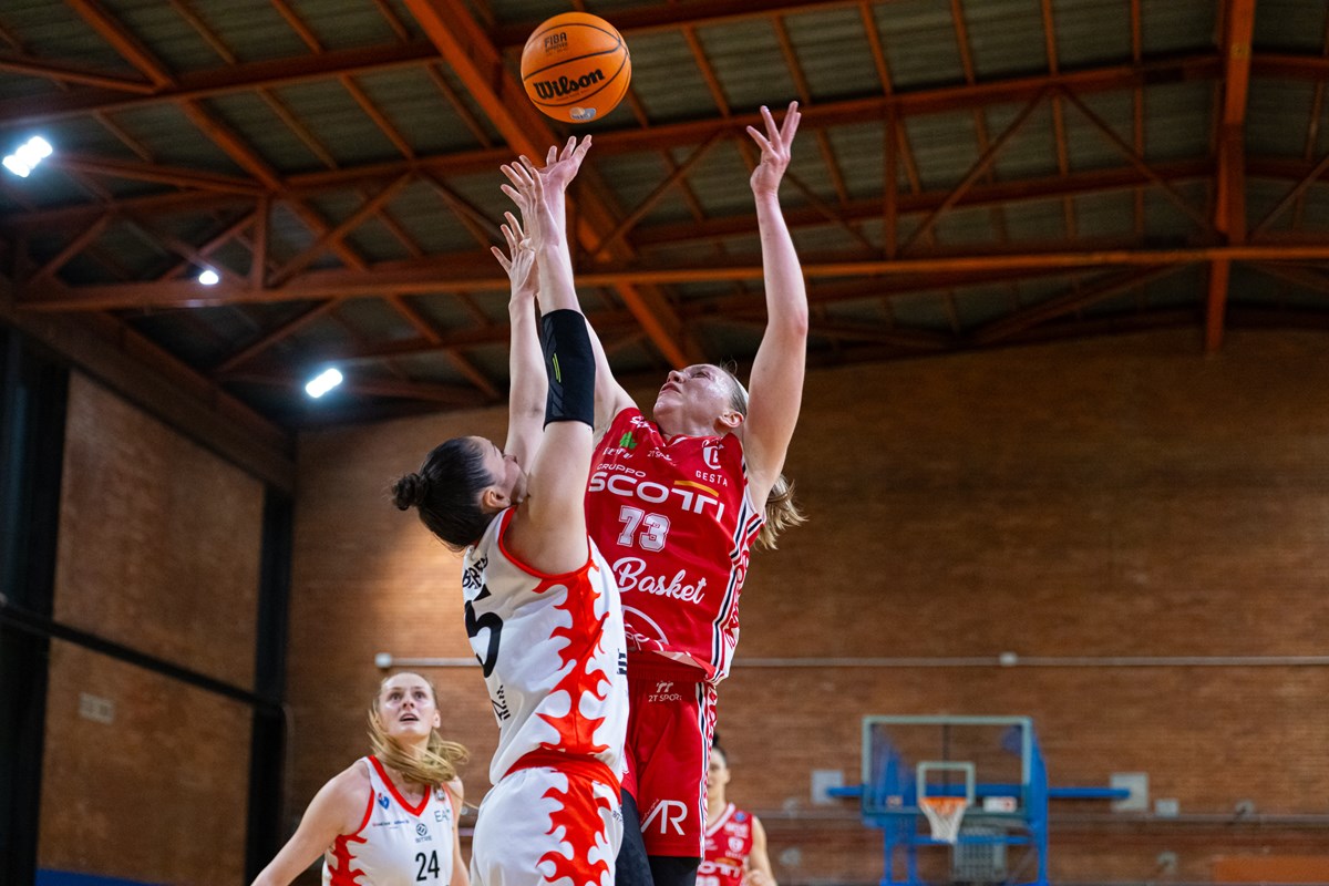 Vente va al ferro per i primi due mentre la prima bomba è di Lussignoli: 4-5. La Scotti è in ritmo subito come le capita spesso ed il gioco da 3 punti di Rylichova vale il 6-14. Ancora lei per il più 10 (6-16) di un'Use Rosa che viaggia a ritmi alti e diverte. Nespoli crea le prime difficoltà alle biancorosse ed al 10' siamo su un 13-21 che fa comunque ben sperare. Sanga, però, alza l'intensità difensiva ed entra così in partita (17-21). Coach Cioni ferma tutto anche se il copione non cambia e il pareggio è nell'aria. Lo firma Barberis a quota 21, suggello di un parziale di 8-0, con Ruffini che finalmente la mette dentro. La Scotti si rimette in ritmo ma niente può su un numero di Marinkovich per il sorpasso e, soprattutto, sul canestro sulla sirena di Toffali per il 31-25. Al di là di questo, a preoccupare è il 18-4 di parziale, numericamente il dato che segnerà la partita. Si riparte con cinque punti di Tava 36-25 ed una palla persa delle biancorosse. Vente appoggia a canestro ma Sanga tiene sempre a distanza le rivali. Il terzo di Vente obbliga coach Cioni al cambio ma la Scotti continua a tirare male specie dall'arco e non dà mai la sensazione di riuscire a cambiare l'inerzia della partita che resta saldamente nelle mani delle padrone di casa. Luissignoli mette il libero del 46-37 del minuto 30 e la frazione finale si apre con un errore delle biancorosse che Nespoli punisce subito. Lussignoli è l'anima della Scotti ma la precisione al tiro non va di pari passo con l'energia. Non va la tripla del meno 6 di Ianezic mentre entra quella di Toffali sul ribaltamento di fronte: 53-41. Siamo nella fase decisiva, l'Use Rosa allunga la difesa e manda in crisi Milano. Rylichova dalla lunetta mette il 53-47, una palla recuperata viene trasformata da Ianezic nel 53-49 ma Toffali va a segno subito. Ci riprova Vente (55-51) e Logoh, dalla lunetta, firma il 55-53. Gran tripla di Nespoli – il tiro decisivo - con Vente che fa 1 su 2 ai liberi. Sbaglia anche Bestagno, due triple di Rylichova non vanno ma, sempre lei, ruba ed appoggia il 58-56. Fallo su Bestagno a 7 secondi dalla fine, la milanese ne mette due e la chiude. Col ferro sulla tripla di Ianezic sfuma il sogno biancorosso: 60-56.