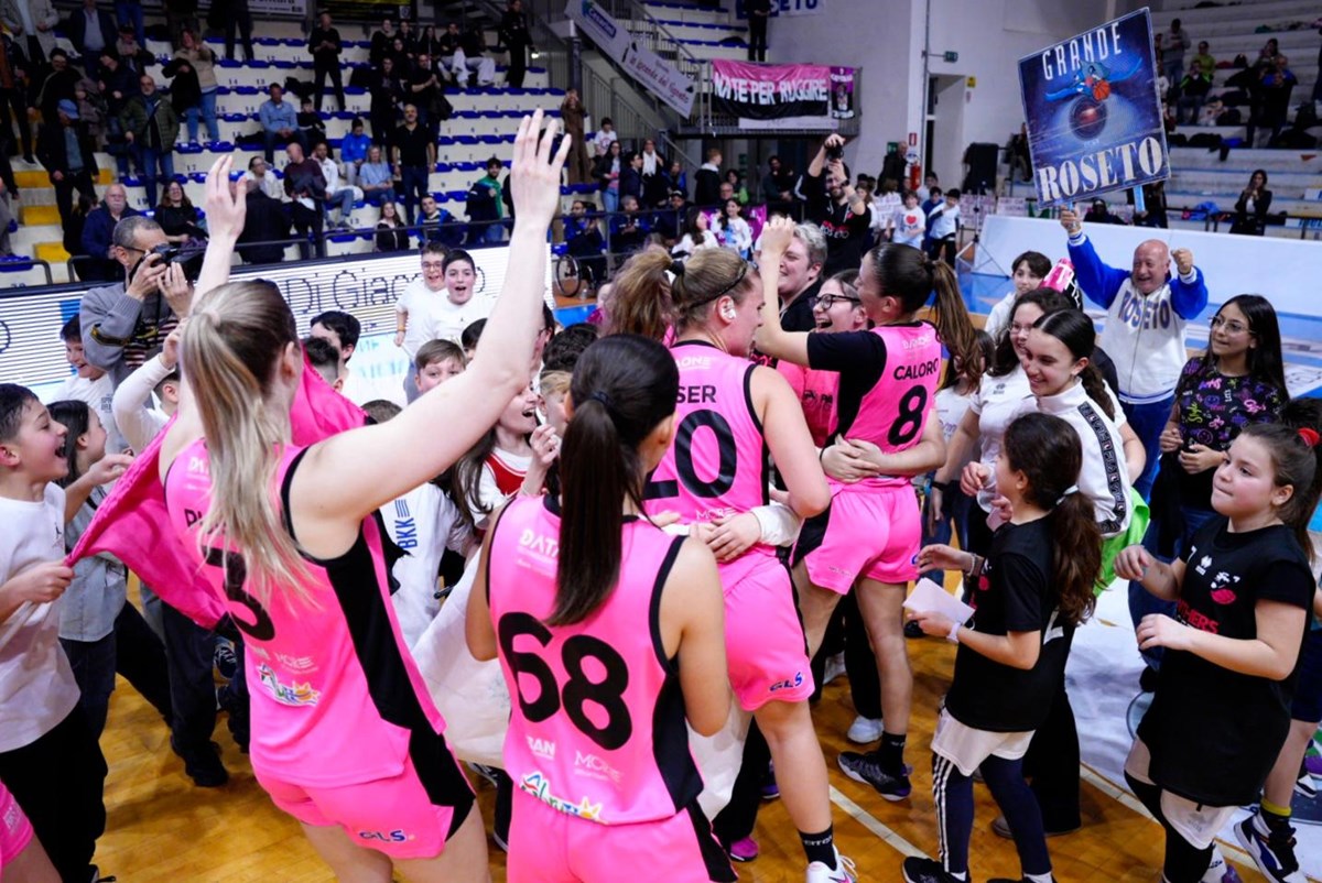 Solo applausi per Fatou, Sammie, Lavinia, Giulia, Beatrice, Gianella, Aurora, Melisa, Patricia, Lucrezia, Alyssa e Rianna. Solo applausi per coach Simone Righi e il suo staff. Roseto affronterà ai playoff Campobasso, con le danze che si apriranno mercoledì 25 marzo.